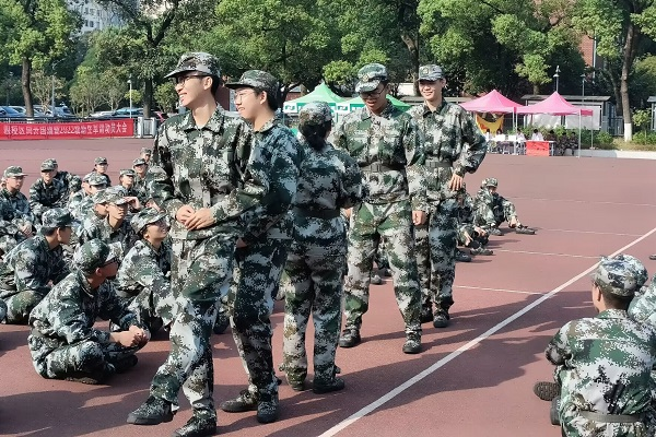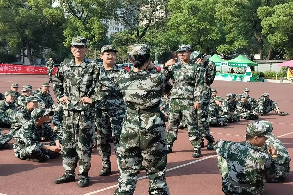 休整期间,为舒缓同学们训练疲劳,增进新生们之间的感情,教官提议开展团队游戏。活动伊始,教官耐心讲解游戏规则。新生们按要求进行组队,有序排成一列,排头同学听取教官指令,采取仅利用肢体动作的方式将口号信息传递给身后同学,通过这样层层传递的方式直至队列最后一位同学,最终此同学当众表达所获信息,答案与指令一致即为成功。总教官曹豪纬表示,此次团队游戏,需要每个同学的配合才能获取胜利,考验了新生们的团队意识与合作精神。