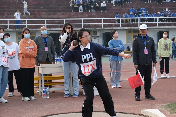 (通讯员 彭开泰 岳佳玲 张艳鑫)11月4日上午,我校运动会如期举行,数学与统计学院(以下简称“数统院”)2022级数一班梁乐、数二班周坤源、数三班许文洁、免师班李静和大数据班姜翔参与田赛铅球比赛。