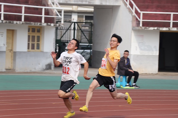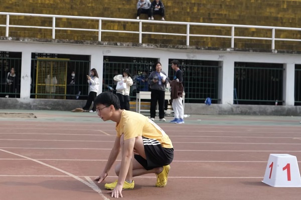 200米赛跑是一个短跑径赛项目,需要运动员做好起跑、加速跑、途中跑以及冲刺四个阶段。经过上午的预赛,两位参赛选手已具备相关的比赛经验,赛前进行了充分的热身活动,或高抬腿,或弓步蹲,将身体调整至最佳状态。随着一声枪响,两位选手用力蹬脚,同时快速挥动双臂,进行爆发性地奔跑。高燃的场面使得看台上的观众摇旗呐喊。最终,何家华、易法鑫分别取得了第六、第八名的成绩。