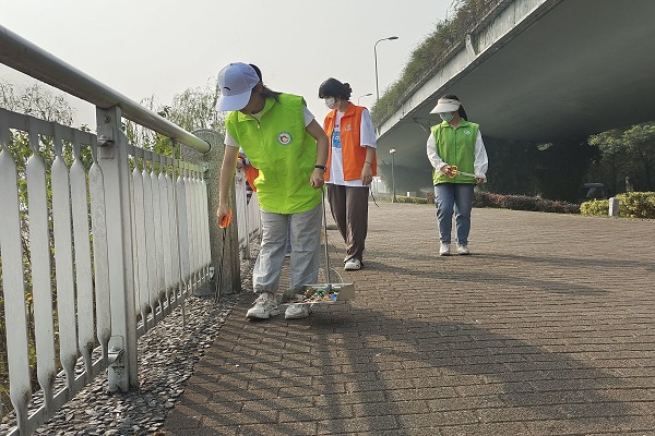 活动准备期间,志愿者从社区杂物间拿取并分配火钳、扫帚、簸箕等劳动工具,志愿者共分为两组,一组前往社区体育场所,用扫帚清理路边下的落叶和白色垃圾,维持社区环境整洁,另一组前往湘江旁的绿化带,对沿河周边的生活垃圾和绿化带的白色垃圾及杂草进行了清除、清运,对于不便于使用工具的区域,志愿者徒手进行了清理,确保清洁到位无死角,其中志愿者们所清理最多的垃圾是随手丢弃的烟头。志愿者们敢吃苦,不怕脏,坚持维护湘江路旁的干净整洁,路过的市民纷纷竖起大拇指点赞。