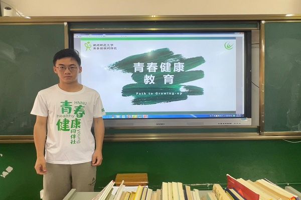 活动伊始,团队成员分发调查问卷,考察学生们对生理健康知识的了解程度。易法鑫向同学们科普青春期相关知识,介绍应对青春期及自我保护的相关方法。此外,他结合展示内容,组织同学们积极讨论,并邀请同学分享保护自己的经验,引起共鸣。活动结束后,易法鑫总结此次活动经验。他建议在后续教学活动中,团队成员应及时反馈学生状态,并对教学流程进行灵活调整。