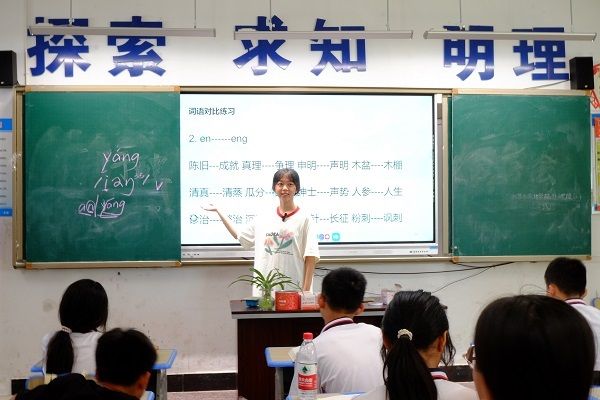 (通讯员 邓珊珊 李汝婷 石瑶)为了增强同学们学好普通话的意识,提高学生们的普通话水平,7月6日上午,数学与统计学院“花开于醴”暑期社会实践团(以下简称“实践团”)于醴陵市渌江中学开展普通话教学活动。此次活动由教学组成员熊璐负责,渌江中学部分学生参与。
