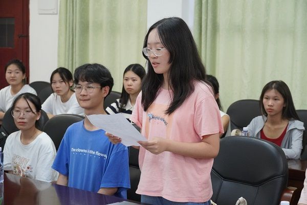 姜恬在发言中回应了校方对实践团的期许,并对老师的接待表示感谢。她代表整个队伍,表示团队将遵守学校的规章制度,同时将举办更多有价值的活动,以丰富学生们的校园生活。