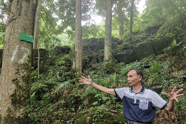 人类没有遗忘历史,历史没有遗忘高坪。陈吉明表示,因为高坪地理位置特殊,中国工农红军红二、红六军团在发动湘西攻势、发展壮大湘鄂川黔革命根据地的过程中,多次经过高坪。跟随陈吉明的步伐,团队成员进入金丝楠木树群,金丝楠古树群落分布面积上千亩,其中,百年树龄以上二十三株,价值亿元以上,是国之瑰宝,曾获得“中国大美金丝楠之乡”的美称。随后,陈吉明和实践团成员抵达花溪谷畔。花溪谷汇集山间甘泉,溪水潺潺,曲径通幽,两块巨石,形似风帆,伫立谷旁。