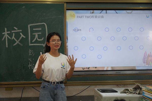 活动伊始,况沙娜结合自身经历向学生展现了音乐不同于其他学科的独特魅力,她表示,音乐给予人自信,提高人的审美水平。随后,况沙娜采用寓教于乐的方式开展活动,她通过听歌识曲与击鼓传花的趣味小游戏激发了同学们对音乐的热情。