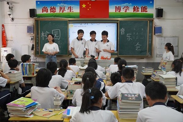 (通讯员 彭开泰 吕倚影 黄美绮)7月10日下午,为缓解同学们的学习压力,提高学生的音乐鉴赏能力,数学与统计学院“师翼启梦”暑期社会实践团(以下简称“实践团”)于娄底市冷水江第一中学(以下简称“冷水江一中”)举办趣味音乐会。此次活动由实践团活动组成员况沙娜负责。冷水江一中部分学生参加此次活动。