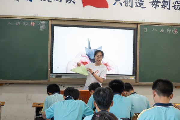 (通讯员 黄颖 张腾 蒲佳莹)7月12日上午,数学与统计学院(以下简称“数统院”)赴湖南省岳阳市平江县暑期社会实践团(以下简称“幕阜行旅”)于平江县第五中学开展“放飞梦想,多彩青春”折纸活动。此次活动由“幕阜行旅”队员谌箫晴负责,平江县第五中学部分学生参与。