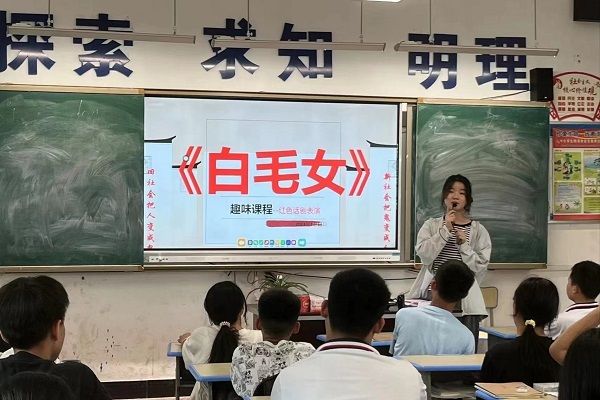 此次活动包含原型介绍、剧本了解、人物分析和剧本分工四个部分。活动伊始,鄢红娟为学生介绍话剧《白毛女》。学生在老师的讲解中认真学习,并认识到话剧《白毛女》是一部歌颂农民革命斗争的影片,具有强烈的人民性和现实意义。活动过程中,鄢红娟带领学生分析剧本人物。随后,实践团成员通过学生自愿举手、小组推荐等形式确定剧本分工。活动结束后,学生们主动阅读剧本并进行排练。