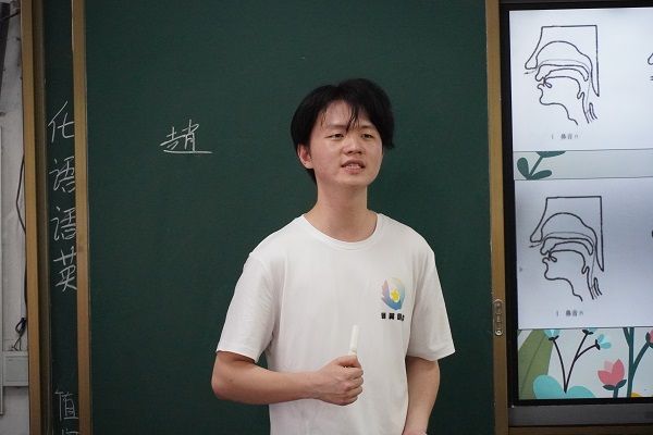 活动伊始,赵晨旭作简要自我介绍,他结合自身经历向同学们介绍了讲好普通话的技巧。赵晨旭围绕“发声、调值、语序”三方面详细解说了普通话常见的问题,同时他逐一给出解决方法。同学们积极参与并进行发音练习,配合教学工作。