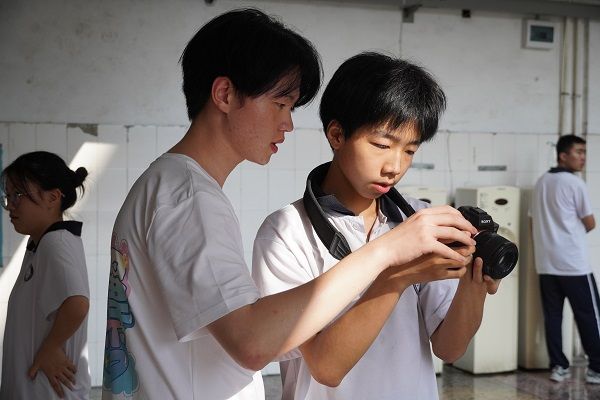 活动伊始,赵晨旭于冷水江一中405教室向同学们简要介绍了相机的使用方法,并通过播放相关视频具体展示了相机各档位与按键的功能。随后,为检验同学们的学习效果,实践团成员有序带领学生前往室外场地。同学们积极参与并按照要求拍摄照片,赵晨旭逐一对其指导。