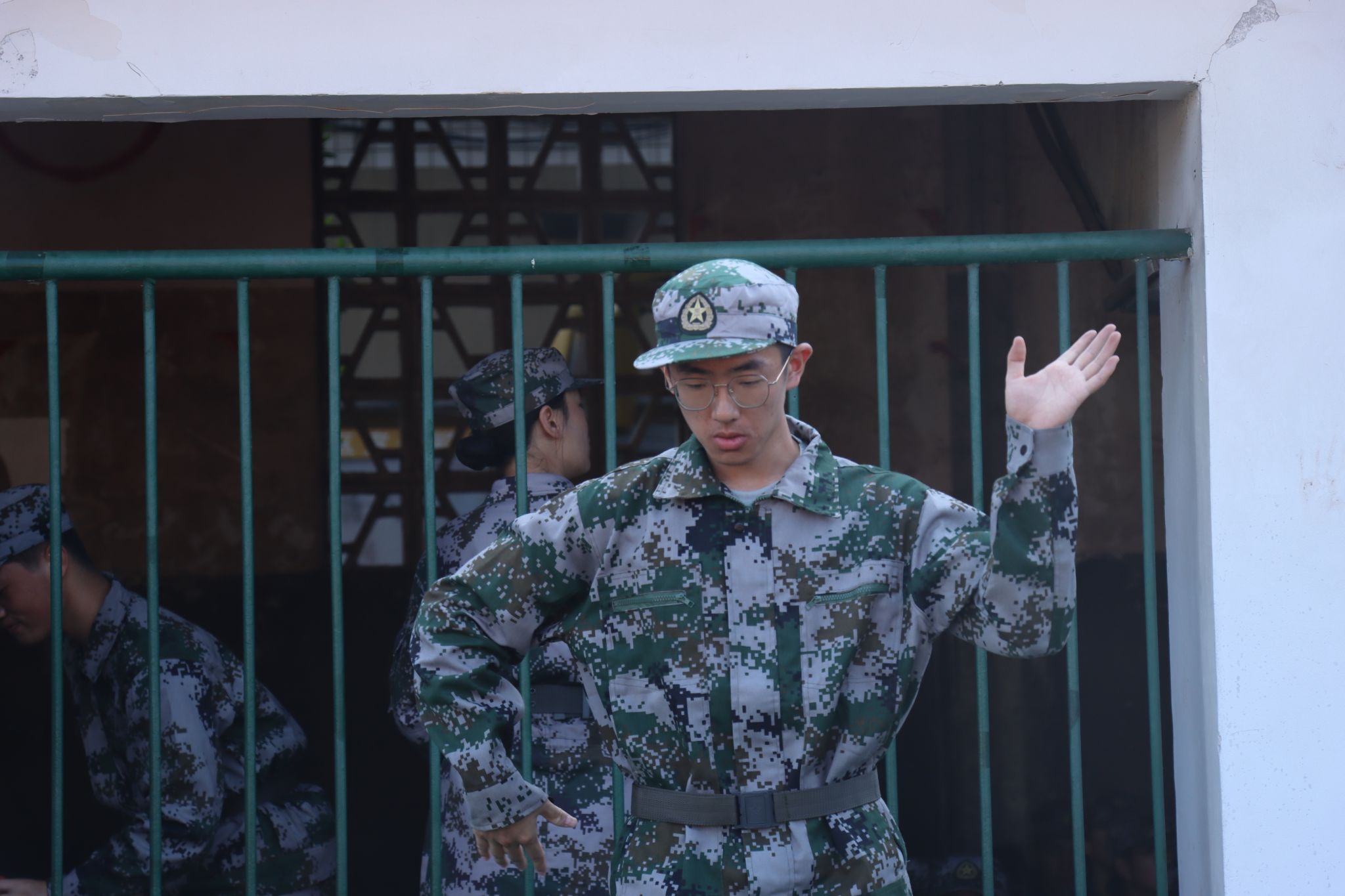 新生在队列前方展示个人才艺,包括但不限于演唱歌曲、表演舞蹈和讲相声等。其中,2023级统计班新生胡宏彬演唱了自己的原创英文歌曲,2023级数学与应用数学二班新生付浩带来了popping舞蹈,毫不怯场。现场掌声不断,气氛活跃,展现了新生们蓬勃的朝气和多才多艺的个人本领,同时也缓解了长时间训练带来的疲倦。