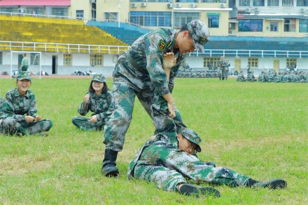 为练习正步走,教官们对新生进行抱腹定腿训练,以此打下基本功。其中,总教官以别致的趣味方式为训练计时。每两名同学面对面训练,再由任意一名同学挑选一首儿歌全体合唱,并以歌曲时长作为定腿时长。当天上午,总教官领唱了《开心往前飞》、《我还有点小糊涂》等经典动画片主题曲,现场气氛活跃,新生情绪高涨。此外,为指导新生练习格斗术、增长新生学习格斗术的兴趣,数统院总教官与另一位教官进行了亲身示范,其他新生在旁围观,赞叹不绝,笑声不断。