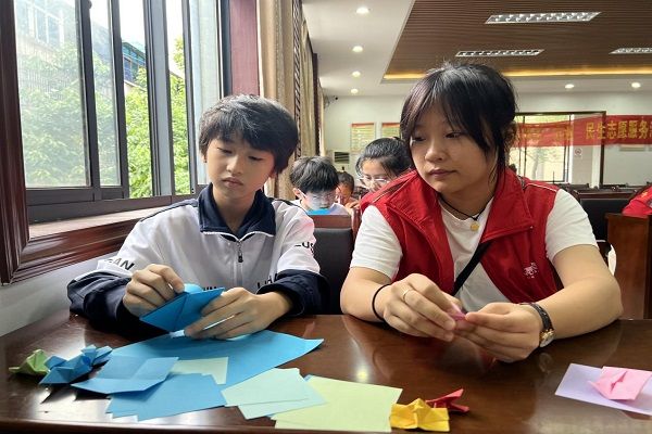 (通讯员 林婷婷 易和伟 蒲佳莹)为了迎接中秋和国庆佳节的到来,以了解折纸工艺,锻炼动手能力为目的,9月23日,数学与统计学院(以下简称“数统院”)团委区校共建项目部(以下简称“区建部”)于望月湖小区湖东社区(以下简称“湖东社区”)开展“纸间芳华,妙手生花”系列志愿活动。此次活动共15名志愿者参与。
