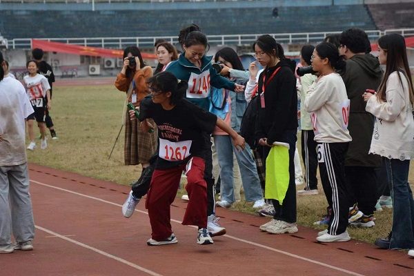(通讯员 杨滢瑜 迟薪格 蒲佳莹)10月28日下午,数学与统计学院(以下简称“数统院”)于二里半校区北院田径场参与运动会4×400团体项目。