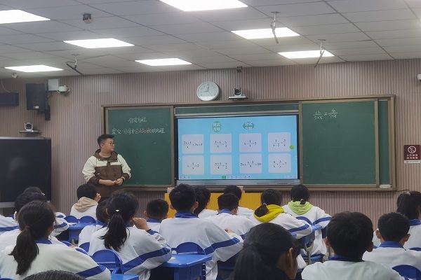 实习生彭普阳,程湘蕾进行公开汇报课《分式方程》及《从分数到分式》。两位实习生在指导老师熊婷英与郭佳佳的指导下,带来了两堂示范课,用别具一格的教学引入方式带领学生学习知识,通过一步步的引导学生循序渐进来完成对分式方程以及分式的知识探究。