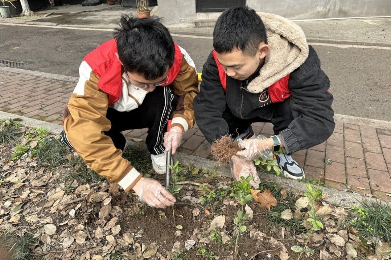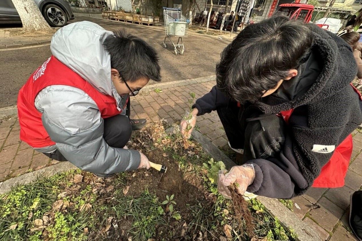 活动开始,社区工作人员演示播种过程并传授种植技巧,志愿者们依次领取植树工具与树苗,开始着手栽种树苗。在植树过程中,志愿者们两两合作,用铲子先除去绿化带上的杂草,松动泥土后挖出适当大小的坑洞,仔细用泥土盖住根部并扶植树苗,再为树苗灌溉上适量水。植树任务完成后,志愿者们与栽种的树苗一起合影留念,道路两旁也添上了新绿。通过此次实践活动,志愿者们表示不仅学习到了在树木栽种中蕴含的丰富知识,同时也更加懂得了生命的美好,人与自然和谐相处的重要性。