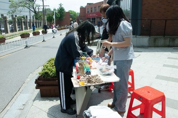 活动前期包括线上线下宣传和物资准备两个部分。绿协成员面向全校同学进行前期宣传,重点宣传活动的参与方式和意义,以便于更多的同学了解到活动内容,提高他们的参与积极性。中期阶段分为两个子活动,首先进行废品收集活动,于格物楼大厅摆点进行,接着分发收集到的废品,以供同学用来制作手工艺品,达到变废为宝的目的。