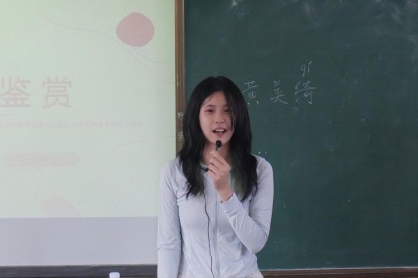 课程开始,黄美绮以互动形式向同学们讲解电影的起源与发展。随后,她系统介绍了电影的分类以及其他相关理论知识,并邀请学生分享看过的各类电影以及感悟。讲解过后,黄美绮为学生放映电影《寻梦环游记》,同时,她引导学生们关注影片中的文化元素、人物性格塑造以及情节发展的逻辑,帮助他们理解并尊重不同文化的多样性。观影结束后,同学们纷纷发表个人感受和见解,黄美绮也参与到学生的讨论中,鼓励学生们勇敢表达自己的想法,并引导他们学会用批判性的眼光看待艺术作品,培养独立思考的能力。