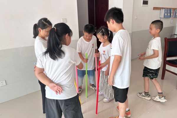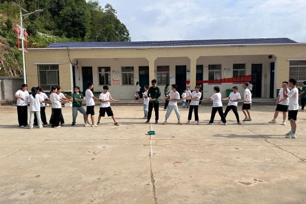 此次趣味运动会将游戏与运动竞技相结合。实践团成员向学生介绍了此次趣味运动会的项目及游戏规则,运动会分为团队赛和个人赛两个部分,包括“不倒森林”“二龙戏珠”“拔河”等5个项目。在团队赛中,实践团成员为裁判,学生根据分组,共同完成运动项目。在协作交流中,学生增强了团队凝聚力与合作精神。个人赛中,学生在进行“趣味投掷”和“套圈”等项目时,展现出青少年自信自强、永不言弃的精神面貌。实践团队长对运动会进行总结,鼓励学生积极参与体育锻炼,强健体魄。