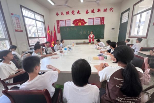 (通讯员 董旭辉 王敏婕 李墨)7月26日下午,湖南师范大学数学与统计学院“江韵击节”暑期社会实践团(以下简称“实践团”)在景福村举办“智慧启迪,携手前行”学习方法分享会。张市中学优秀校友李姗姗担任学习方法分享人,“景福未来”夏令营三班全体同学参与会议。