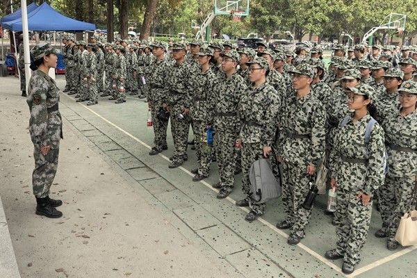 (通讯员 陶薇羽 康舒蕾 胡曼诗)9月15日下午,数学与统计学院(以下简称“数统院”)2024级新生在桃花坪篮球场进行了日常训练。