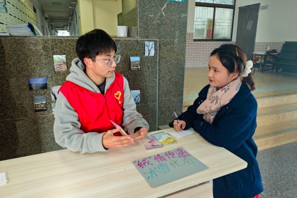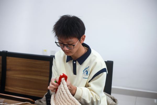 活动前期,负责人组织了线下编织围巾的教学环节。志愿者们观看了相关教学视频,并自备针线、材料包等必需品,在规定时间内完成了编织任务。他们采用了环形编织法、花样针织法等方法,编织出了多种款式的围巾,旨在为福利院的儿童提供更多选择,满足他们的个性化需求。此外,志愿者还在格物楼二楼大厅设立了“暖心小站”宣传点,对此次志愿活动详情进行介绍,并动员同学们以明信片的形式,为福利院的儿童送上祝福,用文字传递温暖与关爱。志愿者收集并整理完围巾与明信片后,将其一同携带至长沙市儿童福利院进行捐赠。在福利院院长的带领下,志愿者们还参观了福利院,深入了解了孩子们的生活方式和心理状况。