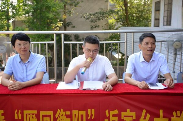 (通讯员 谌颜 迟薪格 翟欣晨)7月15日上午,数学与统计学院“师翼启梦”暑期社会实践团赴衡阳暑期社会实践团(以下简称“实践团”)在三湖镇三湖中学举行开营仪式。衡阳县团县委书记彭兴丹、三湖镇人大主席莫国华、社会工作部副部长钟朝霞、三湖镇学区主任颜捷、当地村民代表、学校师生代表以及实践团全体队员参加此次活动,三湖中学校长华良初担任主持人。