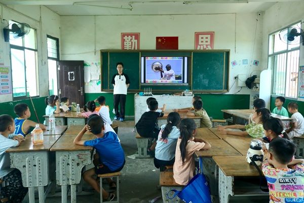 (通讯员 陶薇羽 夏欣怡 罗清奕)7月16日上午,“跃动青春,助力乡兴”——数学与统计学院青年传媒中心赴邵阳市新邵县暑期社会实践团(以下简称“实践团”)于江村小学开展“自然共生,青春护绿”主题自然科普课程。江村小学四至六年级部分学生参与课程,实践团成员担任授课教师。