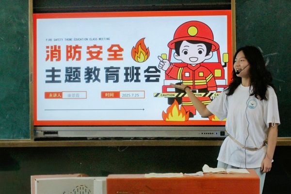 此次班会聚焦提升学生的火灾预防与自救能力,内容分为理论讲解与实操演练两部分。实践团成员通过剖析典型火灾案例,讲解隐患识别的知识要点,重点解析电器使用规范、易燃物管理要求及初期火情处置方法。此外,班会设置知识问答环节,不仅检验了学生的学习成果,更强化了对报警流程与逃生要点等核心知识的记忆。