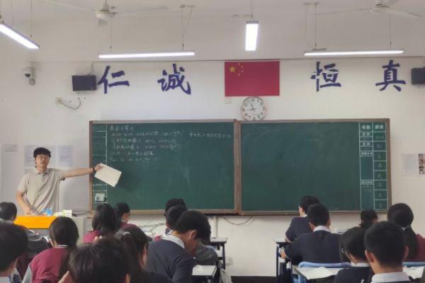 (通讯员 杨丽蓉 李帧 颜永杰)9月28日,为促进数学教学理论与课堂实践深度融合,提升实习队员的课堂教学水平,数学与统计学院2022级赴长沙市博纳第二附属高级中学实习队开展了首次授课活动。此次活动由实习队队长颜永杰面向高一年级二班的学生展开。授课主题为高一数学“基本不等式”的习题讲解,高一年级主任兼数学备课组长蒋宁波以及实习队其余队员参与此次活动。