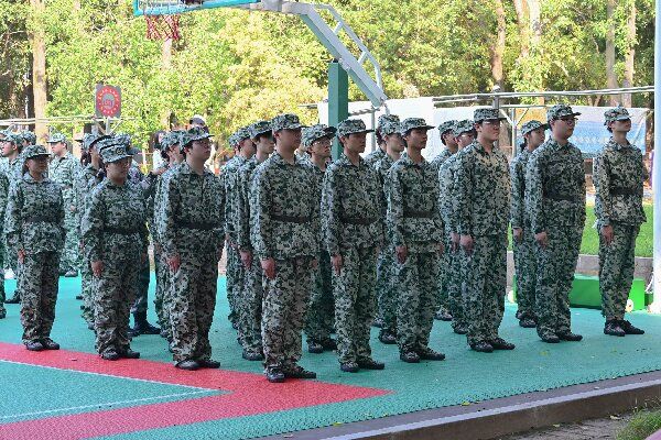 在正式训练前,教官演示标准的站姿,他昂首挺胸,微微收腹,脚跟靠拢,身体前倾,手指紧贴裤缝,手臂自然下垂却有力。随后,新生们按照教官的指示进行站姿训练。在教官的指导和纠正下,新生们的动作逐渐规范,展现出对军训严肃认真的态度以及高昂的斗志与饱满的热情。