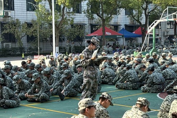 (通讯员 黄希楠 刘天宇 时殷琪)10月9日下午,数学与统计学院(以下简称“数统院”)2025级新生于桃花坪校区篮球场进行军训才艺表演,军训特刊新闻组成员黄希楠在此期间采访了张雨峰、伍莹滢两位教官。
