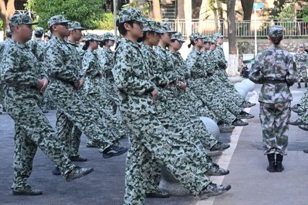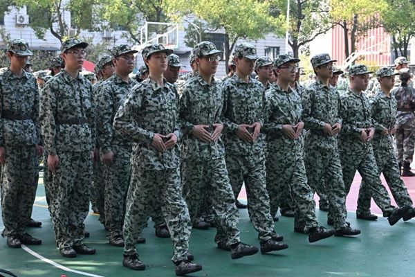 此外,教官对于迈步与落地进行了针对训练。他们通过定腿让学员掌握脚底离地、全脚掌着地的迈步方式,以确保队列在停止行进时,学员动作干净利落,队伍整齐划一。