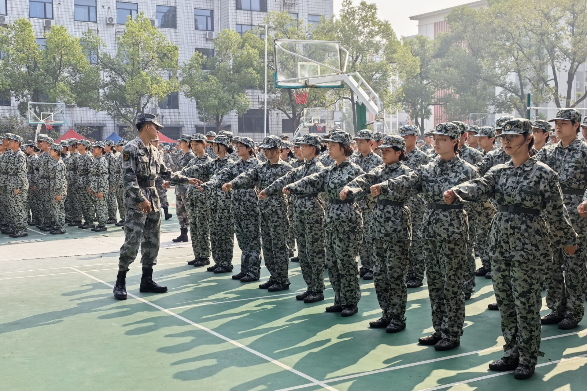 (通讯员 刘昕 李馨 陶薇羽)10月13日上午,数学与统计学院(以下简称“数统院”)2025级新生于桃花坪篮球场开展军训活动,教官指导新生进行定臂训练。