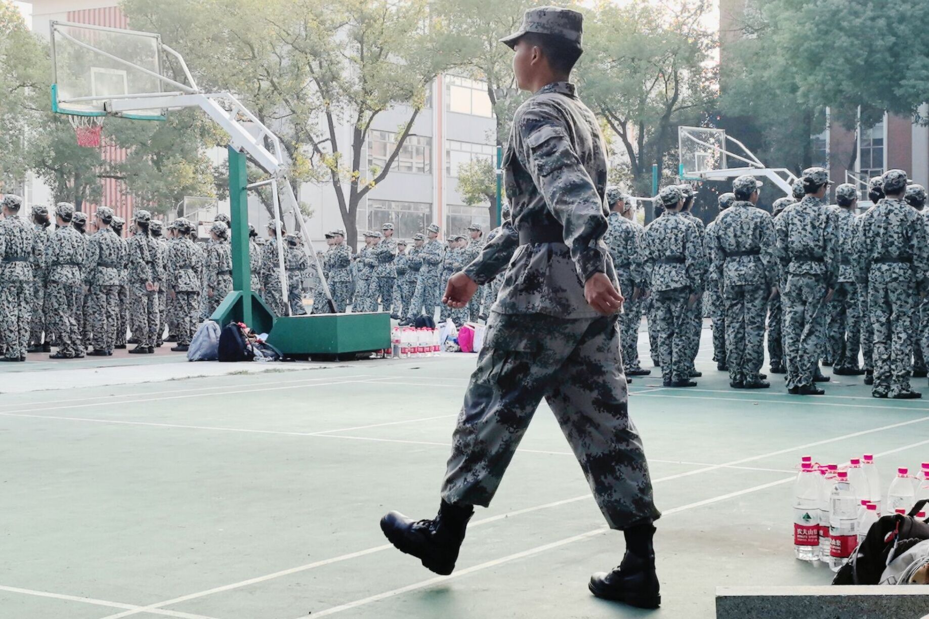 训练伊始,教官讲述定腿的动作要点,脚掌与地面平行,膝盖绷直,脚尖下压,保持身体稳定,重心均匀分布在两腿之间,避免晃动或倾斜。随后,教官向新生示范定腿动作。随着训练的推进,教官将逐步延长定腿时长。据教官介绍,定腿训练可增强新生下肢肌肉耐力、提升新生身体协调性,同时培养他们的意志力和抗压能力。训练采取由短时长、低强度开始逐步过渡的方式,更符合新生的适应节奏。