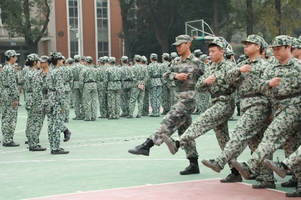 在新生训练前,教官向新生展示踢正步的标准动作,讲解动作要点和训练时的注意事项。随后,教官示意新生进行集体训练,并在训练过程中纠正新生的动作,以确保新生能规范完成动作。此外,教官还安排了动作拆解训练、单排出列展示和优秀新生出列展示等活动,以提高队列动作的整齐性和新生训练的积极性。