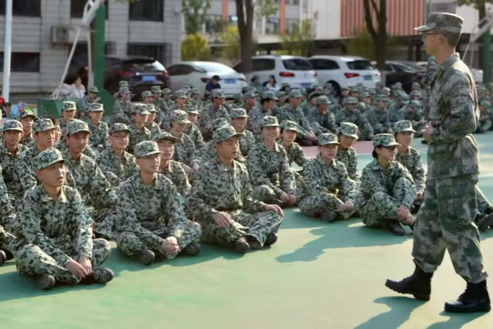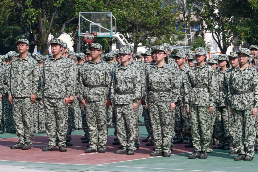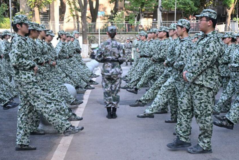 完成基础训练后,训练重点转为停止间与行进间动作。为确保正步走等动作排面整齐,教官将每个动作拆分为分解与连贯两个环节,并组织新生进行面对面练习。通过重复训练,新生可自行发现并纠正动作偏差。