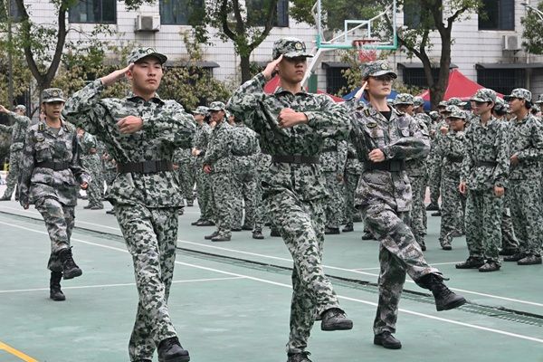 教官表示,标兵作为学员模范带领方阵行进,要求学员具有扎实的基本功与饱满的精神面貌。他们通过高标准高要求的选拔制度筛选出新生标兵后,向标兵演示正步分列式敬礼并展开教学。训练过程中,学员们以正步走为准备动作,根据教官口令,迅速向右转头,右臂从正步向后摆臂的终点直接朝额角抬起,保持行军礼姿势。教官要求学员在第一步踢腿落地前,完成转头和举手的定位,以确保动作的连贯性。此外,在行进过程中,教官提醒学员的左臂与腿部的姿势全程与正步走保持一致。