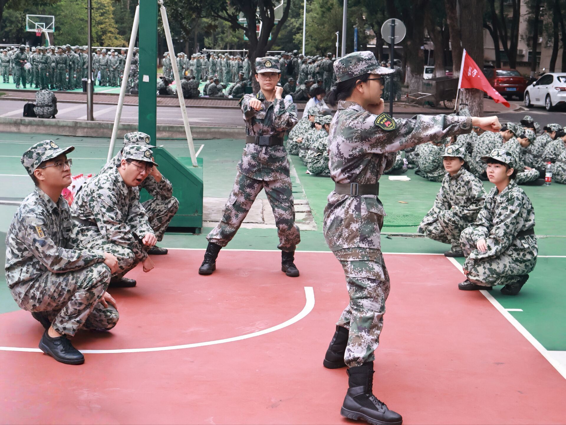 一排教官杨瑞阳为新生示范了格斗术第一套动作的要点,并提示新生可跟随练习。她表示,新生要掌握格斗术,必须从第一套动作开始重视基础,不能只追求力量和速度,而是形成正确的动作模式和身体记忆。格斗术第一套动作分为拔挡冲拳、擒臂上勾、顶肘撞膝、击胸砍脖四部分,新生依次练习,并反复演练各动作。训练过程中,杨瑞阳对新生动作逐一进行了纠正。在教官的指导下,数统院一排新生的整体动作水平得到了提升,杨瑞阳对一排新生的表现给予了表扬。