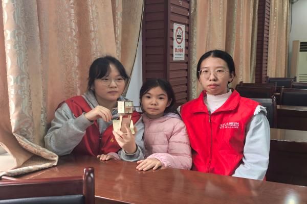 小朋友和志愿者展示手工作品