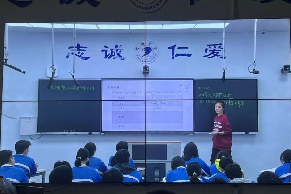 (通讯员 李帅 陈婧瑶 翟欣晨)11月4日,数学与统计学院(以下简称“数统院”)赴稻田中学实习队(以下简称“实习队”)成员陈婧瑶于稻田中学天问楼录课室,面向高一G2501班学生开展题为“对勾函数的图像与性质”的实习公开课汇报。数统院党委副书记涂榉耀、稻田中学副校长谭诚、稻田中学校数学组部分教师、实习队指导老师汤自凯及全体实习队队员参与此次活动。除授课班级在录课室现场参与外,其余人员在听课室同步观摩。