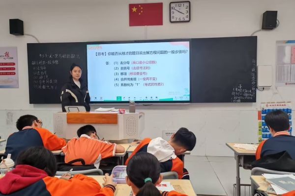 (通讯员 陈怡冰 张智超 李小双)11月7日上午,湖南师范大学数学与统计学院赴株洲市二中初中部实习队(以下简称“实习队”)于2518班进行公开课展示。此次公开课由实习队员陈怡冰主讲,主题为“一元一次方程的解法”,初一数学备课组长吴倩、全体初一数学教师及实习队队员共同参与观摩。