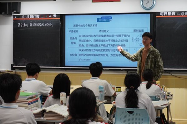 在一南高三教学组教师杨国伟、米静的分别指导下,两位队员完成了汇报课教学。围绕“解三角形的实际应用”主题,队员讲授了高度、距离和角度等典型题型的解题方法。他不仅帮助学生梳理测量相关术语,还引导他们运用正弦定理与余弦定理将实际问题转化为数学模型。另一位队员则深入讲授了等比数列的定义与性质,帮助学生掌握“知三求二”思想,理解等比数列与指数函数的关联。