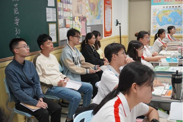 (通讯员 舒敏 袁红玉)10月27日,数学与统计学院赴顺德第一中学西南学校(以下简称“一南”)实习队成员贺泳亮和舒敏于一南致远楼高三8班和高三4班教室,分别进行了数学学科“解三角形的实际问题”与“等比数列”的实习公开课汇报展示。一南高三数学组部分教师以及全体实习队队员参加此次活动。