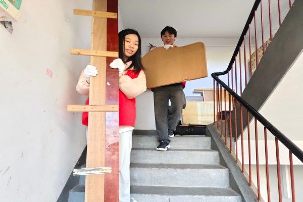 清理过程中,志愿者团队分工明确,逐层对楼道进行排查与清理。面对大件废弃家具,志愿者们多人协作,合力将其搬运至楼下指定区域,并对长期堆放的废弃纸箱等杂物也进行了统一清运。搬运完成后,志愿者使用扫帚、簸箕等工具,对清理后的地面及楼梯踏板展开全面清扫,确保无卫生死角。经过集中清理,楼道杂物问题得到解决,社区环境的整洁度与安全性均得到可视性提升。
