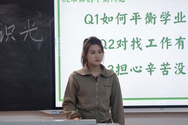 为解答学生的学业困惑,主讲人围绕“大学课程学习”展开经验分享。她们以数学分析、高等代数为例,提醒同学们课前标记疑点,课上认真记录重点,课后分题型整理并标注解题思路。