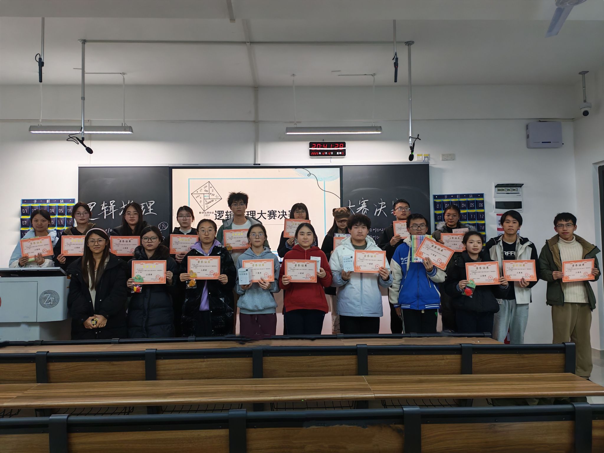 比赛分为初赛与决赛两个阶段。在初赛阶段,参赛学生于规定时间内完成了逻辑推理试题,比赛负责人依据答题正确率遴选出优秀选手晋级决赛。在决赛过程中,参赛学生自由组队,比赛负责人通过幻灯片同步展示题目,各个队伍依次通过了轮流选题作答、抢答、团队共同作答三个环节。比赛负责人精准统计各队伍总分后,现场公布最终结果,并为所有获奖学生颁发奖状与奖品。